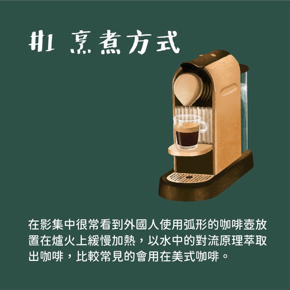 在影集中很常看到外國人使用弧形的咖啡壺放置在爐火上緩慢加熱,以水中的對流原理萃取出咖啡,比較常見的會用在美式咖啡。